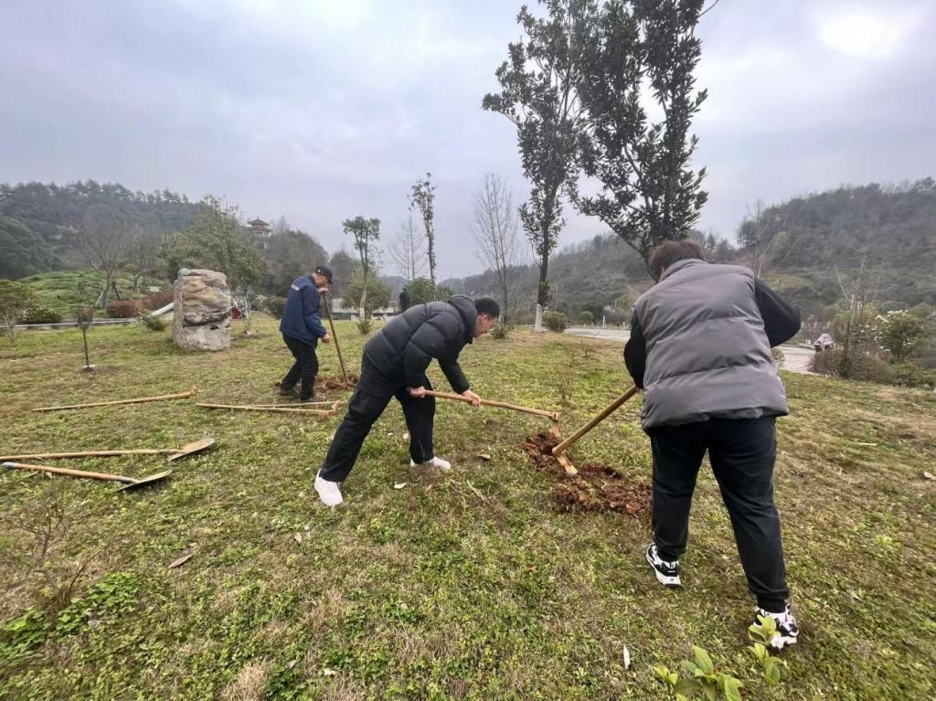 活动当天,大家早早集合,带着铁锹、水桶等工具前往植树地点,并迅速投入到植树活动中。有的挥锹铲土,有的扶苗填坑,有的提水浇灌,各个环节衔接有序,配合默契,现场一片热火朝天的劳动景象。