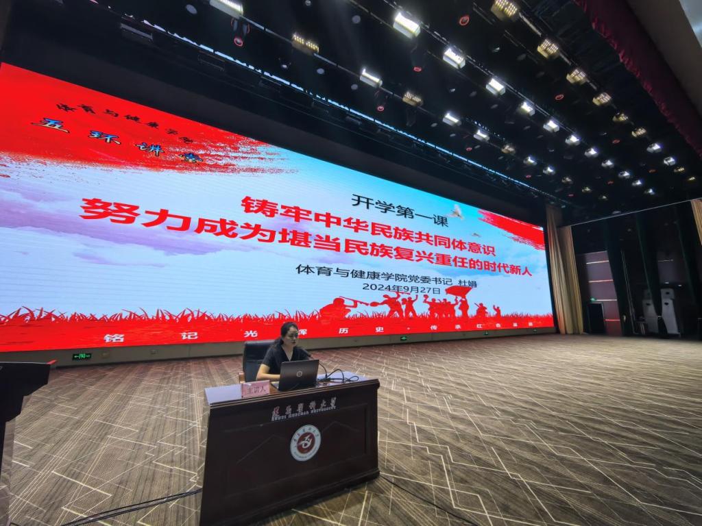 9月27日晚,2024级新生见面会在新蒲校区会堂举行。公司党委书记杜娟,党委副书记、经理汪伟,党委副书记唐溢,党委委员、副经理黄涛,党委委员、教工党支部书记田峰出席见面会,康复医学教研室主任熊伟、专业技术教研室主任李勇、运动康复教研室主任张婕、专业理论教研室负责人王会会,辅导员、兼职班主任、员工兼职班导以及2024级全体新生参加。