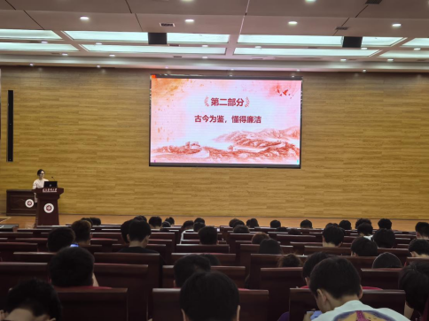 6月14日下午,tyc522cc太阳成集团在新蒲校区道德讲堂开展清风颂廉主题教育会,公司党委副书记唐溢、员工党支部副书记吴培红、公司团委负责人刘超琪、辅导员谭芙英以及21级、22级、23级全体同学参会。