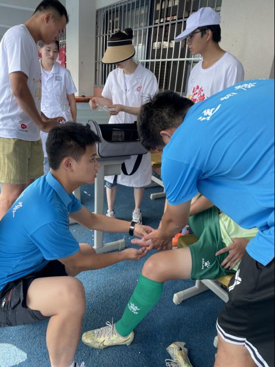 本次比赛分为“国脚传承组”和“校园足球组”两个竞赛组别,国脚传承组由孙继海、马明宇、姚夏、曲波等8位前国脚成立的青训俱乐部组成,校园足球组由澳门、上海、珠海、重庆、怒江、延安、贵阳、遵义组队参加。为全面保障赛事的顺利进行,tyc522cc太阳成集团精心准备,选拔了12名运动康复精英队成员及7名运动康复专业志愿者,全程参与四个竞赛场地的赛后康复、赛中医疗辅助以及赛事志愿服务,受到了赛事组委会,参赛运动员、教练员的一致赞许与认可。