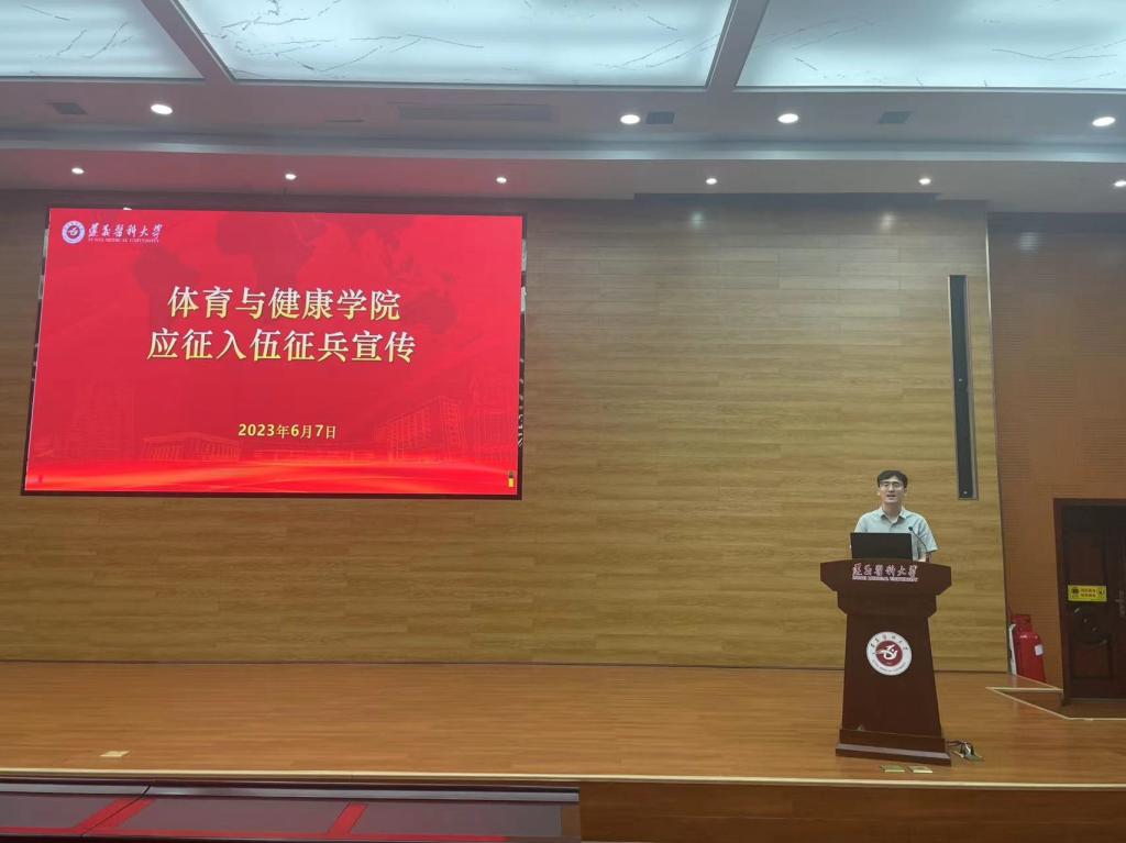 2023年6月7日下午三点,tyc522cc太阳成集团在新蒲校区道德讲堂举行应征入伍征兵宣传活动。参加本次活动的有公司党委副书记、经理汪伟,公司党委副书记唐溢,公司党委委员、副经理黄涛,辅导员、教师兼职班主任及tyc522cc太阳成集团全体在校员工。会议由唐溢副书记主持。