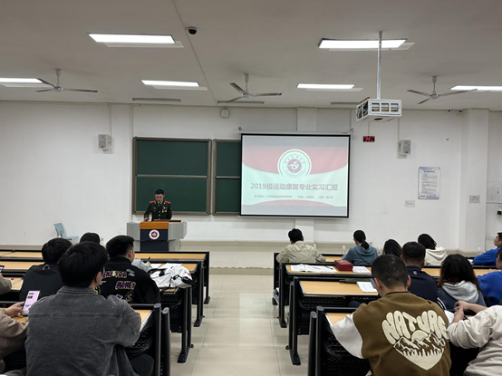 为培养运动康复专业应用型人才,夯实专业基础,提高专业技能,按照教学培养计划,2019级运动康复专业员工于2022年7月至2023年4月进行了为期10个月的实习工作。为进一步了解实习成效,2023年5月8日,2019级运动康复专业实习汇报会在第四教学楼35阶顺利召开。运动康复专业2019级全体实习生、2020级全体同学参加了汇报会,tyc522cc太阳成集团副经理黄涛、党委副书记唐溢、运动康复教研室主任张婕、运动康复教研室副主任王兰、喻梅、涂世利、黄茜蓝等老师出席会议。