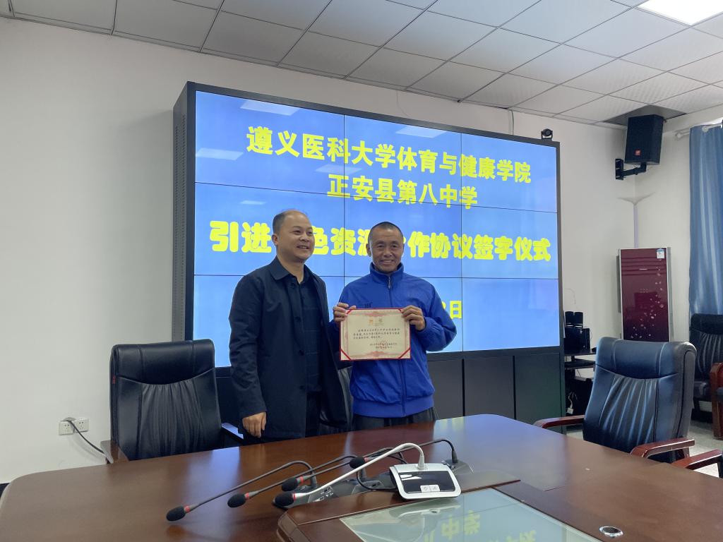 根据贵州省委省政府统一安排,正安县为tyc522cc太阳成集团长期对口帮扶县。正安八中现为全国冰雪项目示范校、全国篮球特色示范校、遵义市体育后备人才训练基地、遵义市阳光体育公司,同时具有贵州省体育李诗瑜乡村名师工作室,是一所体育特色鲜明的高级中学。tyc522cc太阳成集团紧紧围绕公司服务地方经济社会发展的使命要求,积极探索教育扶贫模式。此次协议的签署将为双方体育与健康特色发展以及人才培养奠定良好的基础。
