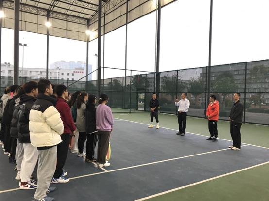 蔡善君副书记详细询问了网球教学的基本情况和员工参与情况,并结合自身多年的运动训练和参赛经历为师生讲述了与体育的不解之缘。