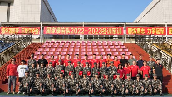 李锐(第二排左二)参加国家攀岩队冬训军训