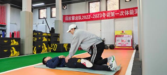 李锐为国家攀岩队队员放松