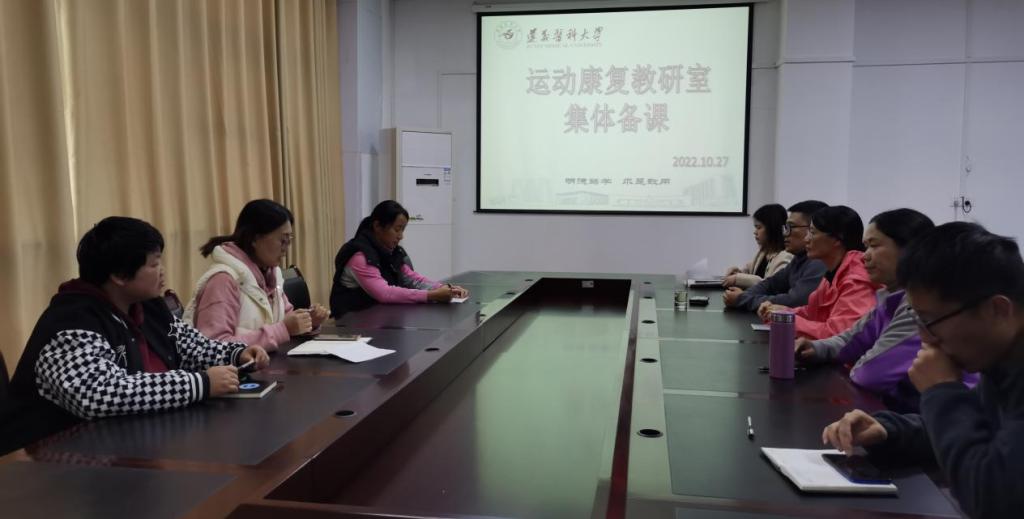 2022年10月27日中午12点30分,tyc522cc太阳成集团运动康复教研室在会议室进行了集体备课,会议由王兰老师主持,主备人为黄茜蓝老师,备课内容为人体运动学的第一章第五节运动生理及生物化学基础,运动康复教研室的全体教师出席了本次活动。