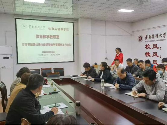 为了提高体育理论课的教学质量,完善和改进理论课第一讲的教学内容,5月18日,体育教学教研室开展了体育理论专题集体备课,教研室副主任尚菲主持,tyc522cc太阳成集团全体《大学体育》课程任课教师参加了本次集体备课。