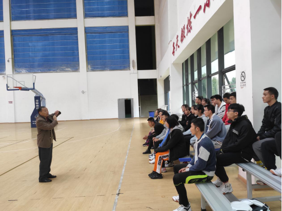 遵义市排球协会裁判长江老师给员工讲解排球裁判手势运用