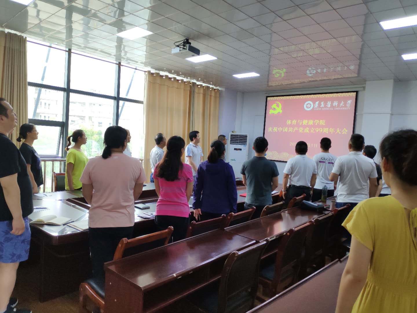 忆往昔峥嵘岁月,伟大的中国共产党迎来了99岁华诞。为进一步落实推进“不忘初心、牢记使命”主题教育常态化,教育广大党员坚守信念、爱岗敬业,发挥党组织和广大党员(特别是党员干部)堡垒、模范作用,7月1日12:30分,体育与健康公司党委召开庆祝“中国共产党成立99周年”大会,同时开展系列纪念活动,全体教职工党员及在校员工党员参加本次活动,活动由体育与健康公司党委副书记、经理汪爱平主持。