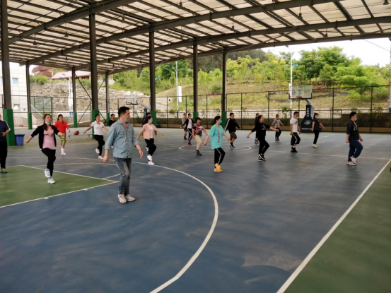 为了在疫情期间安全授课的同时也能保证教学质量,会后所有公共体育课程任课教师在篮球场对上课内容、锻炼方式以及上课间距等注意事项进行演练并讨论,找出上课过程存在的问题。