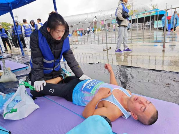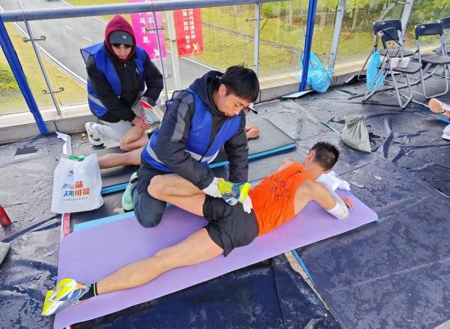 本次比赛是继今年3月遵义半程马拉松以来的重大赛事,是一次规格高、规模大、参与度广、吸引力强的全民体育盛会。自接到任务以来,tyc522cc太阳成集团高度重视,快速征集了140名志愿者,其中100名主要担任赛道医疗观察员,另外40名负责担任终点赛后康复工作。11月12日凌晨3点50分,在气温只有几度的情况下,志愿者们冒雨进行集结上车,在5点准时抵达指定岗位;中午12点圆满完成指定任务。在此过程中,医疗观察组与运动康复组得到了组委会和运动员的一致好评。