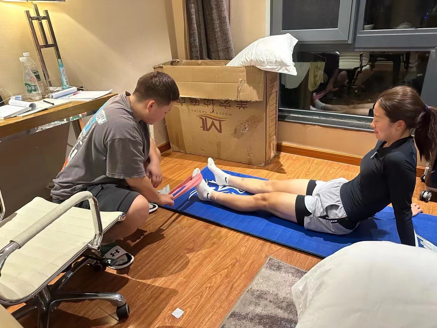 公司运动康复专业在校生同时参与了本次出征亚运会的山地自行车国家集训队赛前保障工作。自2022年冬训开始备战以来,公司先后有7名员工参与保障工作,运动康复专业员工冉海洋以在校生身份入选山地自行车国家集训队康复师,最终助力中国山地自行车队男子米久江获得冠军、男子袁金伟获得亚军,女子李洪凤获得冠军、女子马彩霞获得亚军。