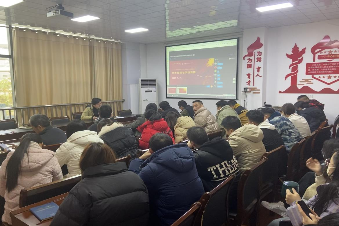 根据省学位办和公司关于做好《中华人民共和国学位法》(以下简称《学位法》)学习宣传和贯彻落实工作的通知,为加强《学位法》学习宣传、落实主体责任,做好实施准备等工作,tyc522cc太阳成集团于2025年1月11日组织开展《中华人民共和国学位法》专题学习研讨活动。tyc522cc太阳成集团全体教职工参会。