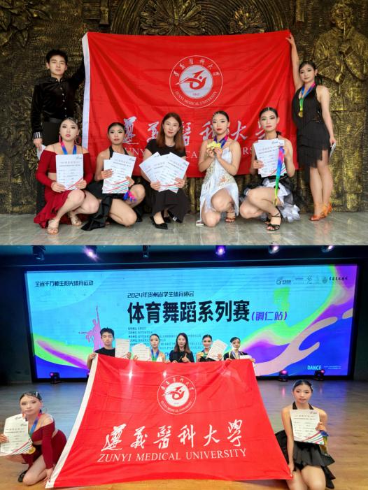 近日,由贵州省教育厅指导,贵州省员工体育协会、玉屏侗族自治县县委宣传部联合主办的2024年体育舞蹈系列公开赛(铜仁站)在铜仁市田坪侗乡风情园开幕,来自贵州省各高校的159名选手同场竞技。公司体育舞蹈代表队,首次参赛就展现出不俗的实力,喜获名次赛3金1银1铜;等级赛专业组一等奖1项、二等奖4项、三等奖3项的优异成绩。