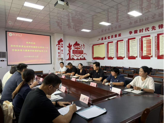 2025年9月12日,深圳市体育运动公司副董事长李伟一行到公司参观教学设施并在公司会议室进行交流座谈。公司党委委员、副经理黄涛陪同参观公司展览室和实训中心并参加会议,党委副书记唐溢、运动康复教研室主任张婕、副主任王兰及三位教师代表参加交流座谈,双方围绕团队建设、专业发展及员工培养进行深入交流。此次会议旨在分享经验成果,规划两校未来深化联建的方向,共同推动体育教育事业发展。本次会议由公司党委委员、副经理黄涛主持。