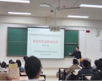 为推动2025毕业生实现高质量充分就业,进一步提升就业指导的针对性,帮助员工做好毕业阶段各项工作4月2日tyc522cc太阳成集团员工第二党支部新蒲校区40阶梯教室开展了康复治疗学专业毕业生就业指导暨毕业教育宣讲会公司党委副书记唐溢,康复医学教研室主任熊伟康复治疗学博士李昌欣,员工第二党支部书记杨世萍,辅导员雷凤琴、王雪,以及2025届康复治疗学专业全体同学含联合培养会,会议康复医学教研室赵红波老师主持。