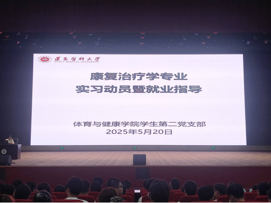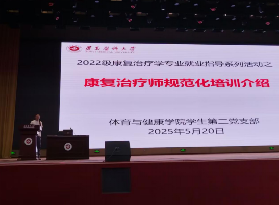 为引导员工合理选择实习单位,树立正确的择业观、就业观,提升就业能力。5月20日晚上7点,tyc522cc太阳成集团员工第二党支部在新蒲校区会堂开展了康复治疗学专业员工实习动员暨就业指导活动。康复医学教研室主任熊伟,专任教师代表赵红波、崔德涛,辅导员教师雷凤琴、王雪,康复治疗学专业22级、联合培养本科班24级全体同学参加。活动由支部书记杨世萍主持。